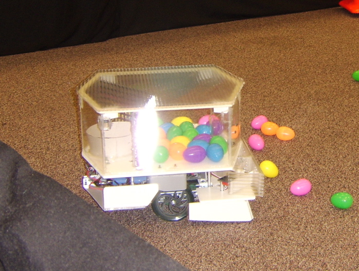 The first time we held this contest it didn't go so well for the Egg Sucker. Early in the contest the vacuum motor burned up, smoking the place up pretty good. Watch the video on YouTube. We held the contest again latter that year and with a new motor it actually won! |