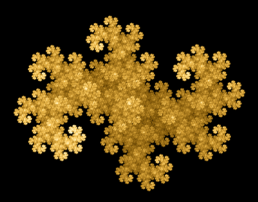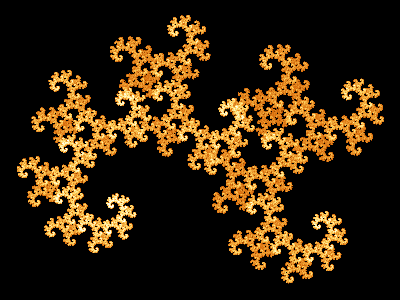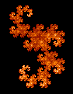 Many of the fractal curves usually created with turtle graphics, have related fractals created by Iterated Function Systems. The images shown here are all variations on Heighway's Dragon curve, created with a two transform IFS. |